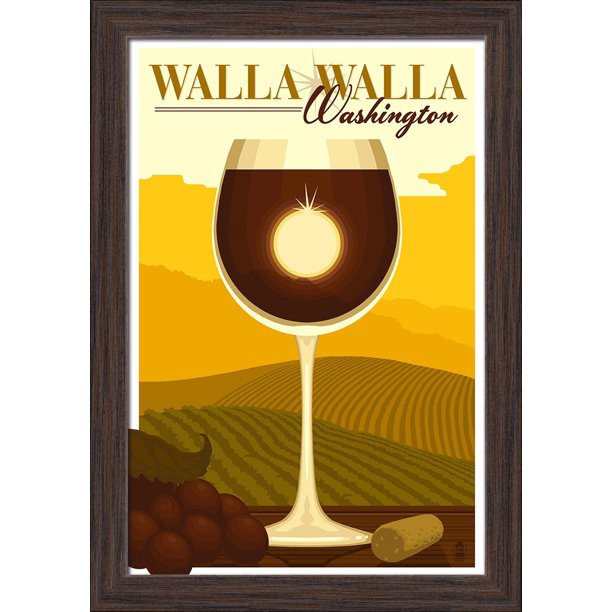 Walla Walla Washington Wine Glass Vineyard Lantern Press Artwork 12x18 Giclee Art Print Gallery Framed Espresso Wood Walmart Com