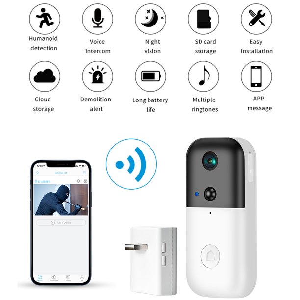 Video Doorbell Camera With Chime 1080p Wifi Smart Door Camera Motion Detection 2 Way Audio Waterproof Rechargeable Support Cloud Storage Night Vision For Ios Android Walmart Com